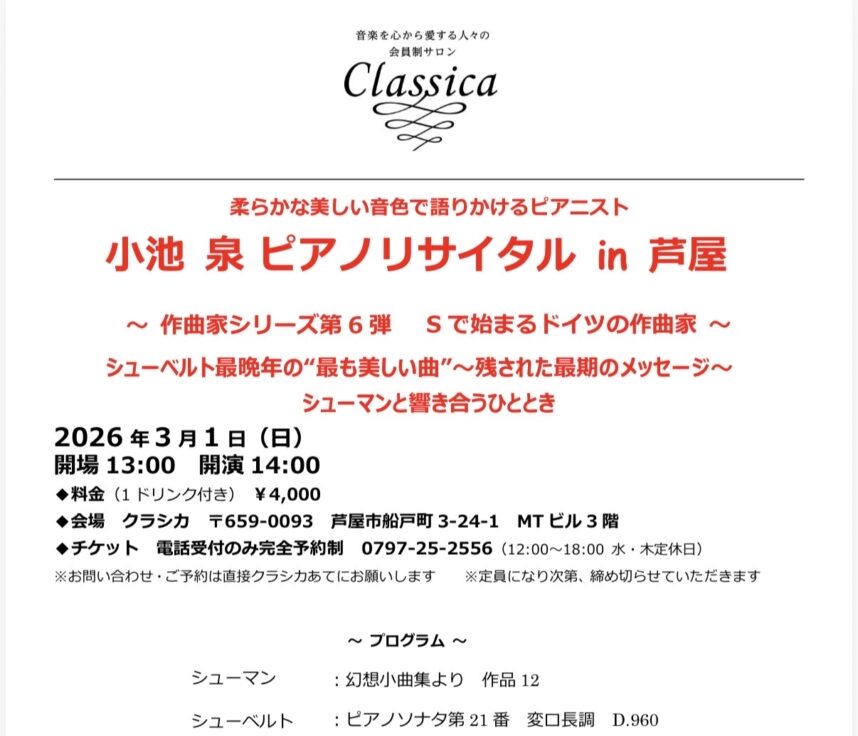 小池 泉ピアノリサイタル in 芦屋